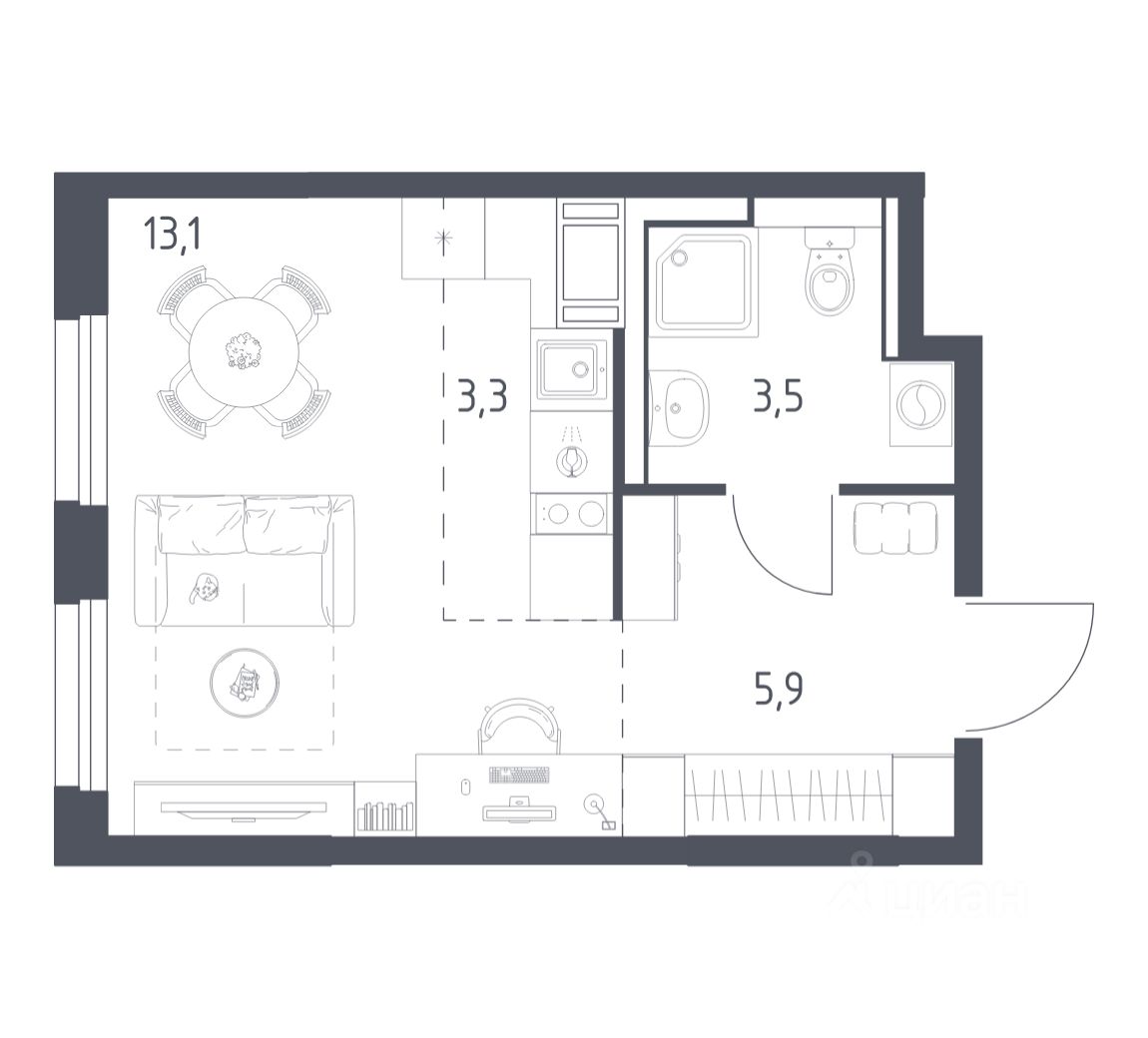 Строим кварталы для жизни с заботой о будущем. Предлагается студия комфорт-класса площадью 25,8 кв.м в корпусе 4.1 на 5-м этаже, в жилом комплексе ''Мытищи Парк''.