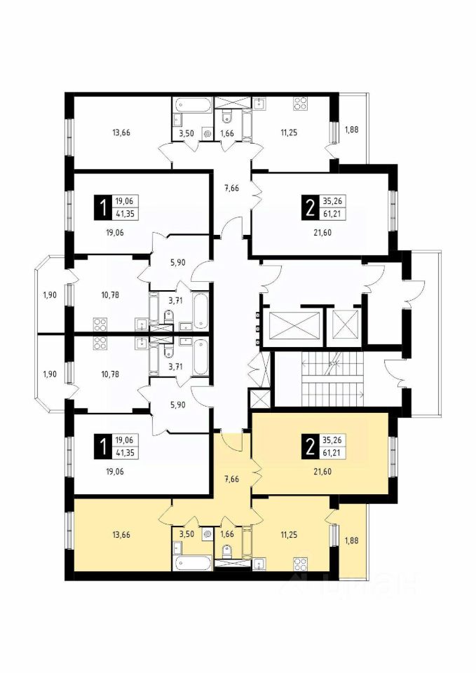 Продаётся 2-комнатная квартира в сданном доме (Корпус 41), срок сдачи: 4-кв. 2025, общей площадью 61.21 кв.м., на 8 этаже.