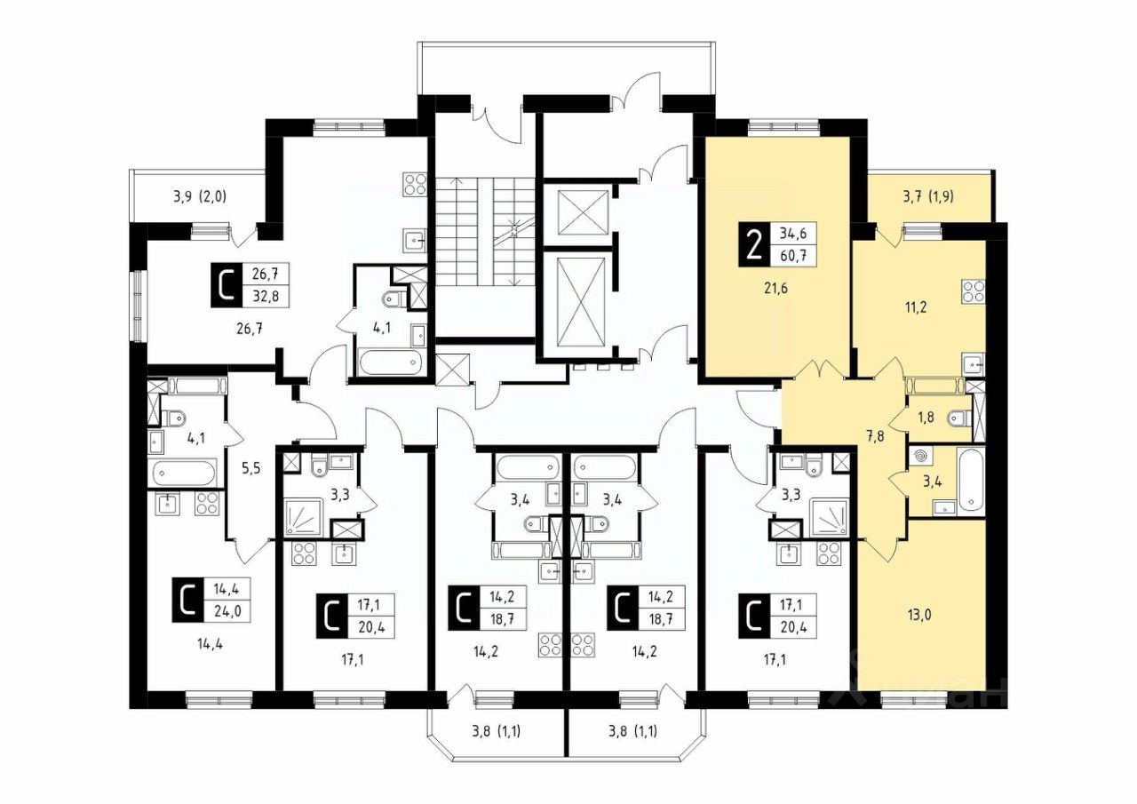 Продаётся 2-комнатная квартира в сданном доме (Корпус 43), срок сдачи: 4-кв. 2025, общей площадью 60.70 кв.м., на 11 этаже.
