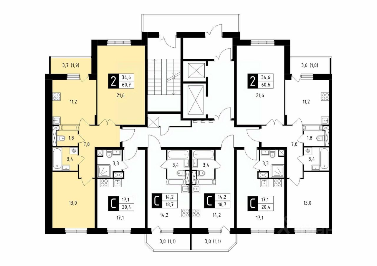 Продаётся 2-комнатная квартира в сданном доме (Корпус 43), срок сдачи: 4-кв. 2025, общей площадью 60.70 кв.м., на 4 этаже.