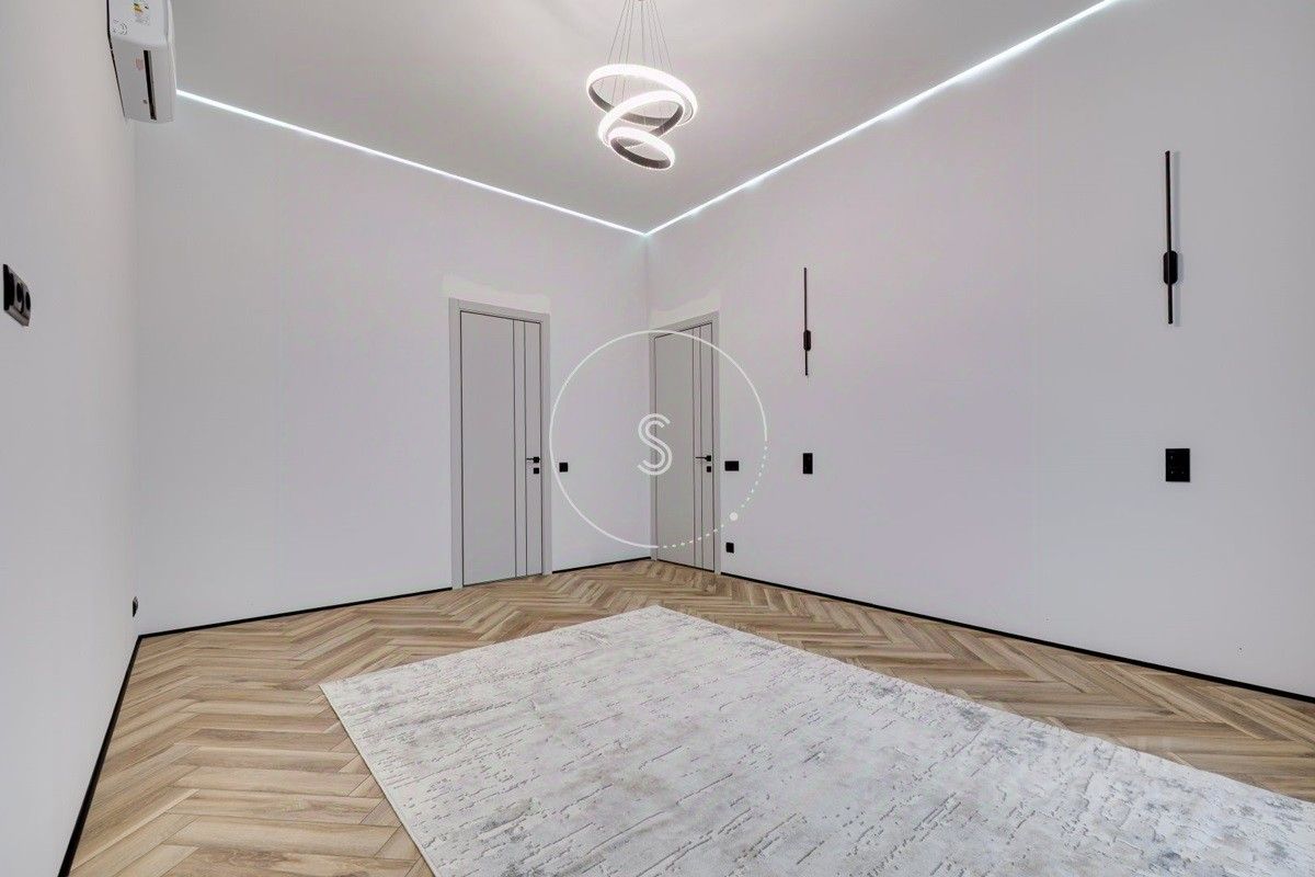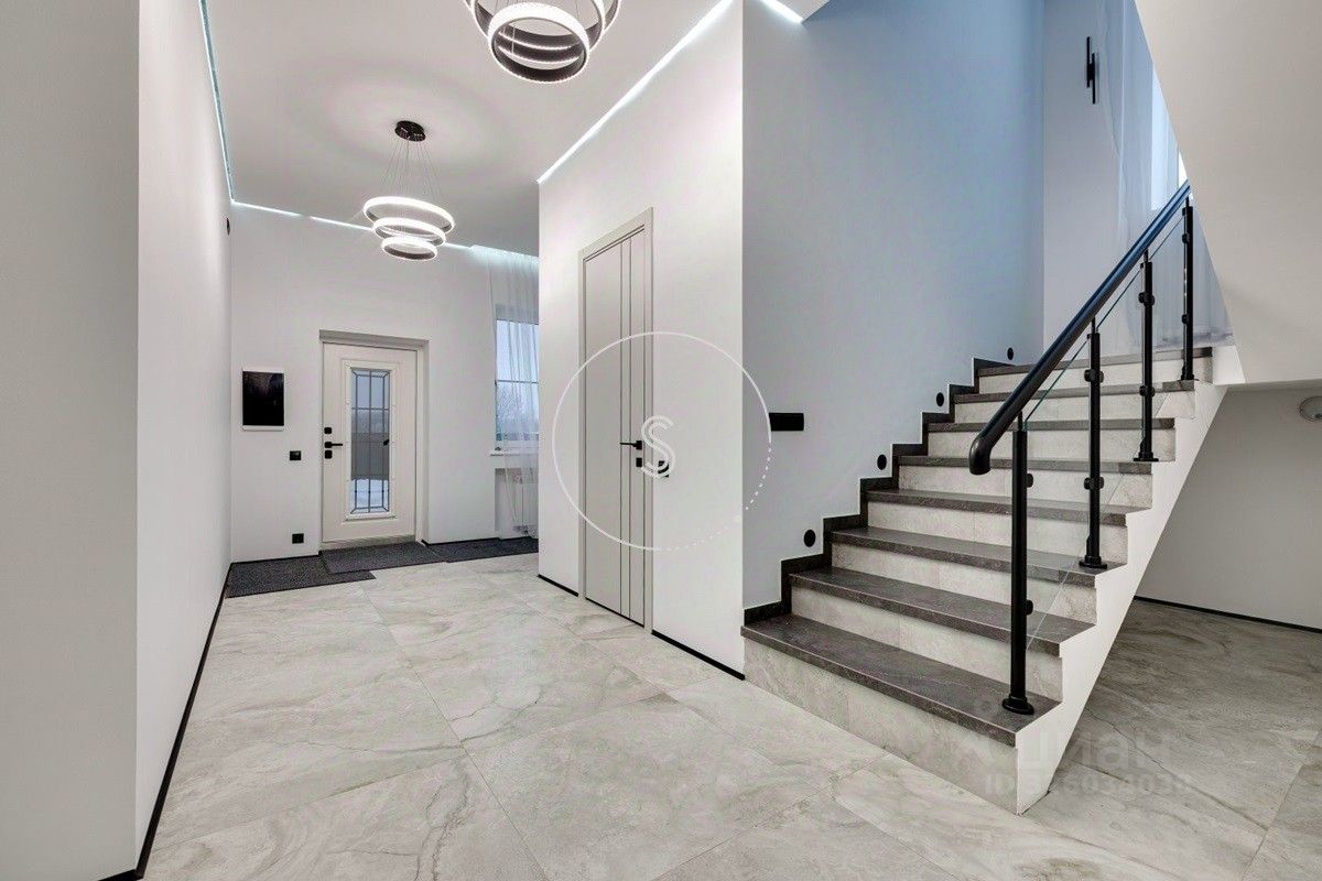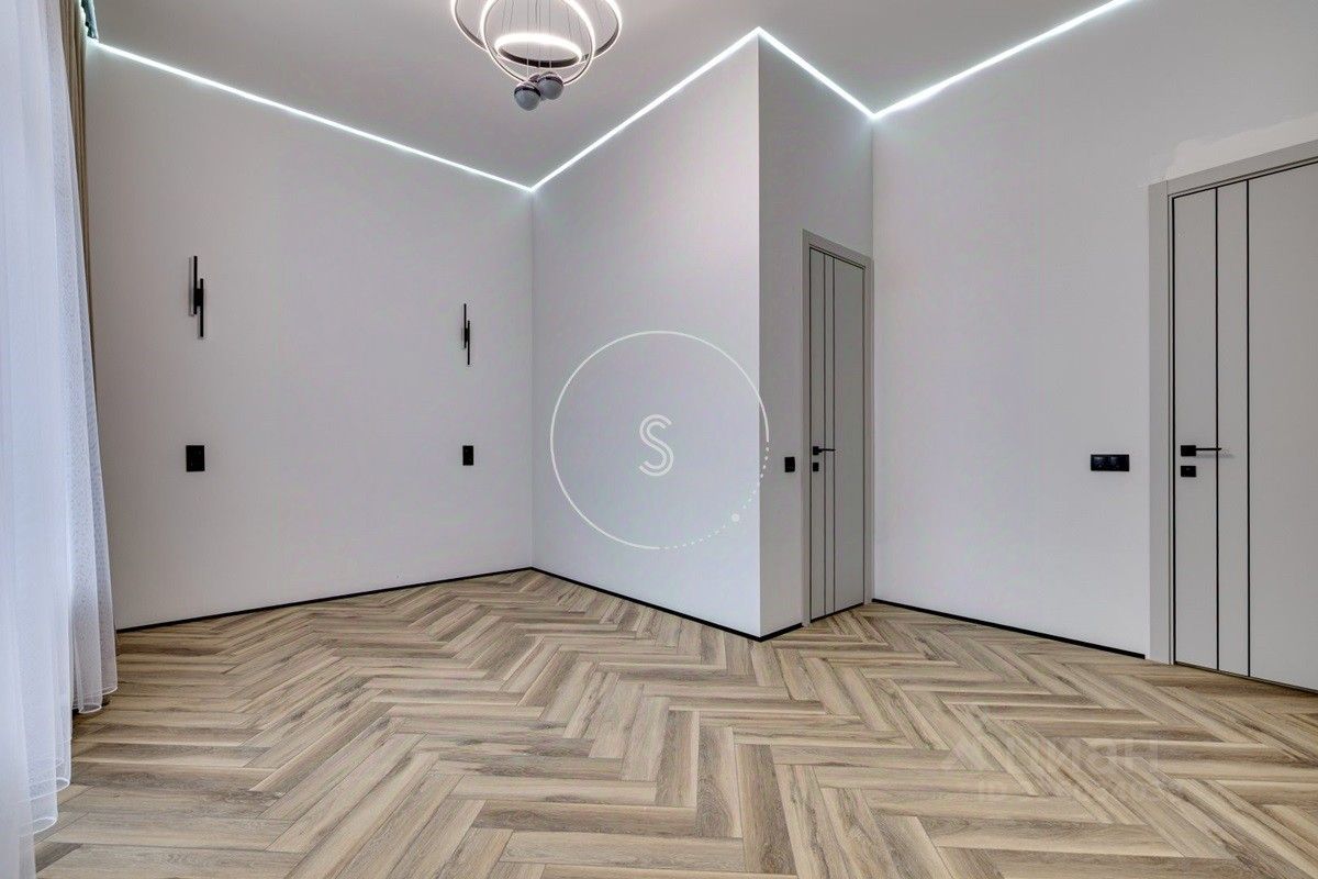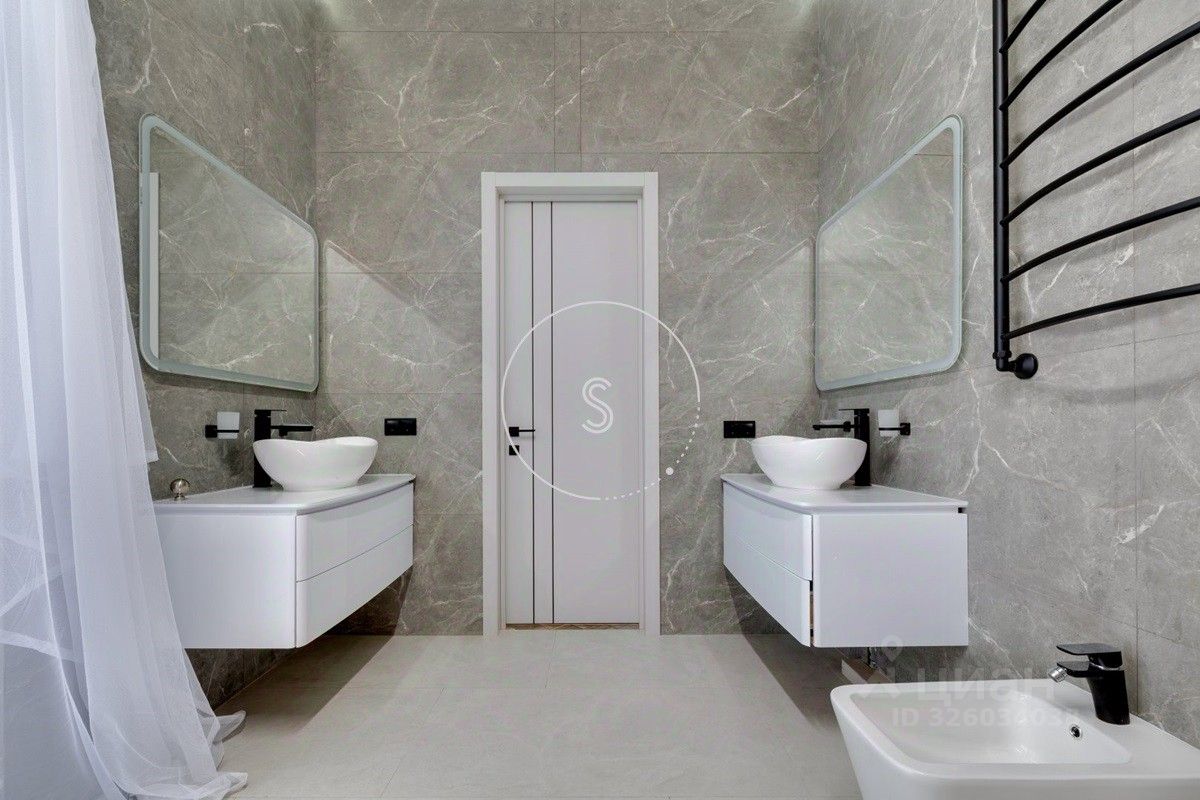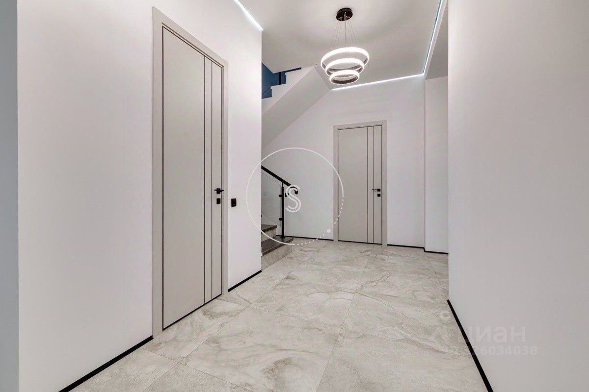 Лот 4438. Предлагается новый дом 280 кв.м. + 90 кв.м. отдельное строение с гаражом на 4 машино-места и зоной барбекю, на участке 9 соток. Новый ремонт в современном стиле. Панорамное остекление. Кондиционирование. Высота потолков на 1 этаже 3,15 м, на 2 этаже 3,3 м. Планировка: 1 этаж - холл, спальня, санузел, гостиная-кухня (из кухни выход на участок). 2 этаж - 4 спальни со своими санузлами, выход на балкон. Выполнен ландшафтный дизайн, освещение. Водоснабжение и газ центральные, канализация септик.
