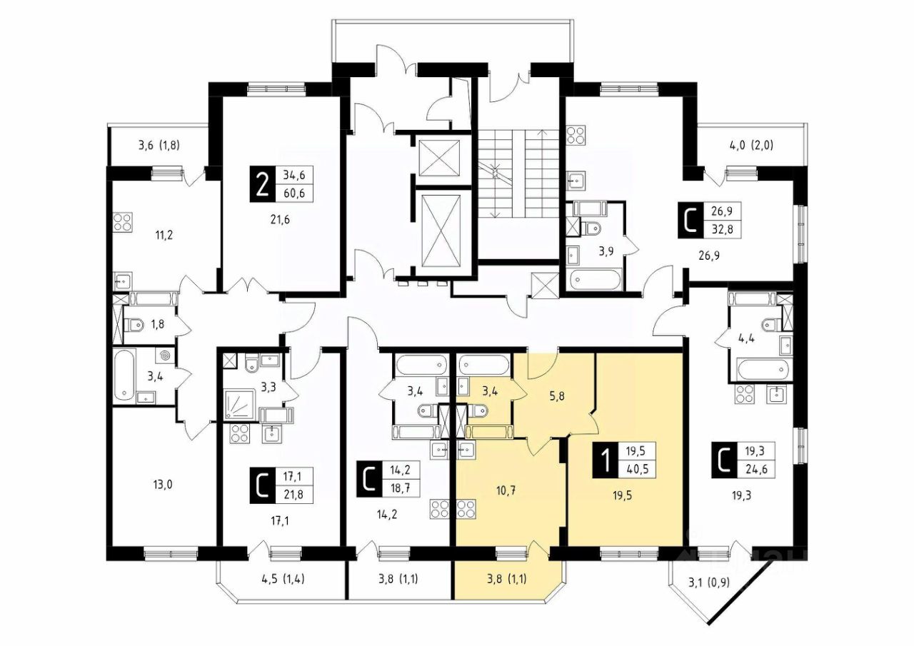 Продаётся 1-комнатная квартира в сданном доме (Корпус 43), срок сдачи: 4-кв. 2025, общей площадью 40.50 кв.м., на 14 этаже.