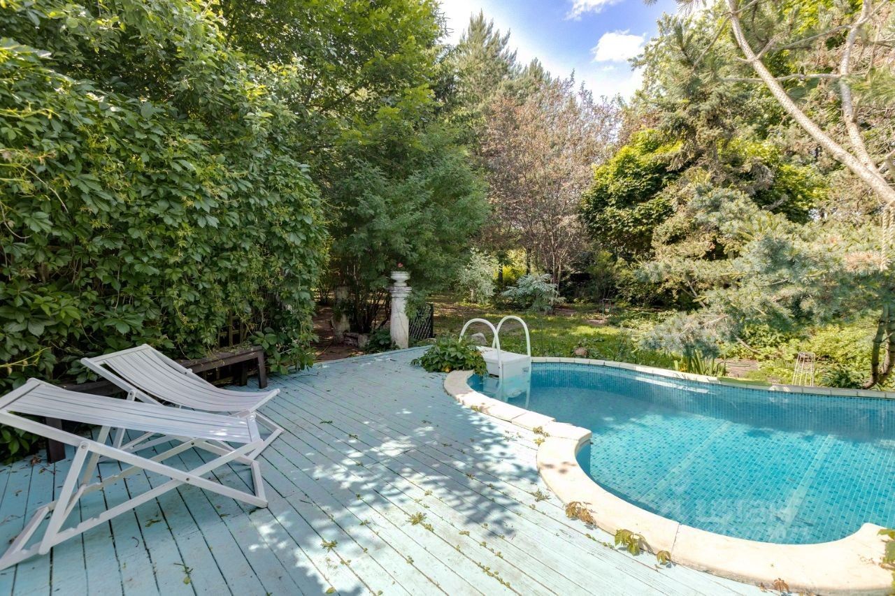 Снаружи усадьба окружена взрослым садом с обширными насаждениями деревьев и кустарников - рододендронов, фруктовых деревьев , розовых кустов и небольшого огорода , парой дровяных сараев, сараем для садового инвентаря, домиком для генератора, уличным бассейном с подогревом и двойным гаражом с электрическими воротами и местами для свободной парковки автомобилей. Площадь земельного участка 27,2 сотки. Впечатляющие размеры усадьбы делают ее идеальным семейным домом, домом для отдыха, семейным отелем или инвестиционной недвижимостью.