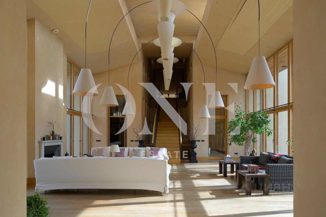 Особняк спроектирован в современном стиле итальянским архитектором. Панорамное остекление наполняет внутреннее пространство светом и воздушностью, создавая атмосферу уюта и гармонии с природой.