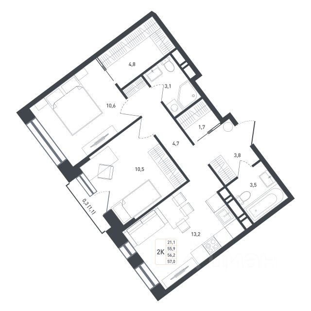 Продается светлая и уютная 2-комнатная квартира площадью 58.7 кв.м, расположенная на 6-м этаже 8-этажного монолитного дома, построенного в 2025 году. Дом находится в современном и развивающемся районе, что делает его идеальным вариантом для комфортного проживания. До станции метро ''Бунинская аллея'' всего 18 минут на автомобиле.