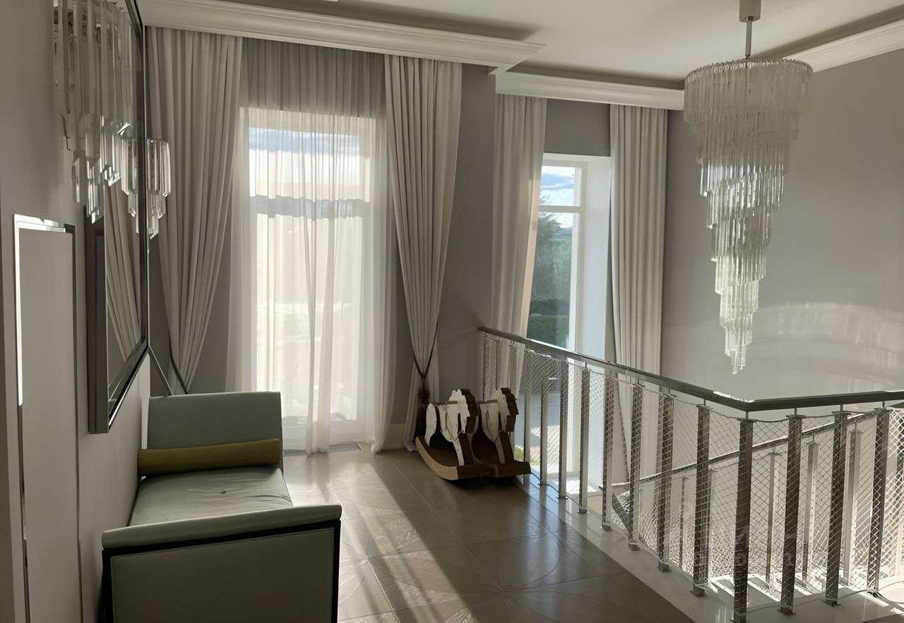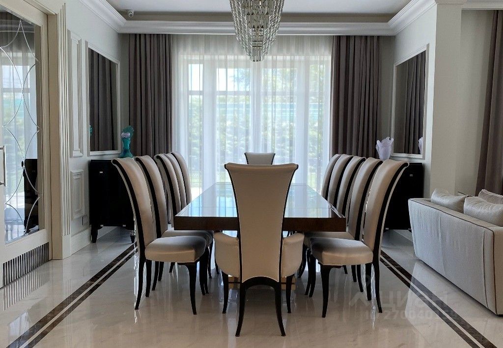 Предлагается готовый дом в классическом стиле с новой дизайнерской отделкой под ключ. Благоустроенный участок имеет ландшафтное оформление. Большая оборудованная веранда, зона гриль с большим грилем Наполеон. В доме 3 хозяйские спальни с ванными комнатами и гардеробными, 3 гостевые спальни с санузлом, просторная гостиная, состоящая из двух отдельных зон и камина, семейная гостиная, объединяющая гостевой и хозяйские блоки, столовая на 14 человек, зона для завтраков, кабинет, 2 полноценные кухни, спортзал 50 м2 с оборудованием Techno Gym, зона СПА (просторная чайная комната с обеденной зоной на 10 человек, хамам , русская баня, генератор снега), массажный кабинет и салон красоты, большая сезонная гардеробная на 2-м этаже, две террасы.